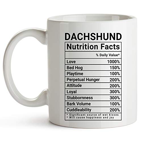 ebay YouNique Designs Dachshund Mug, 11 Ounces, White, Nutrition Facts Coffee Mug, Weiner Dog Gifts for Women, Wiener Dog Gifts